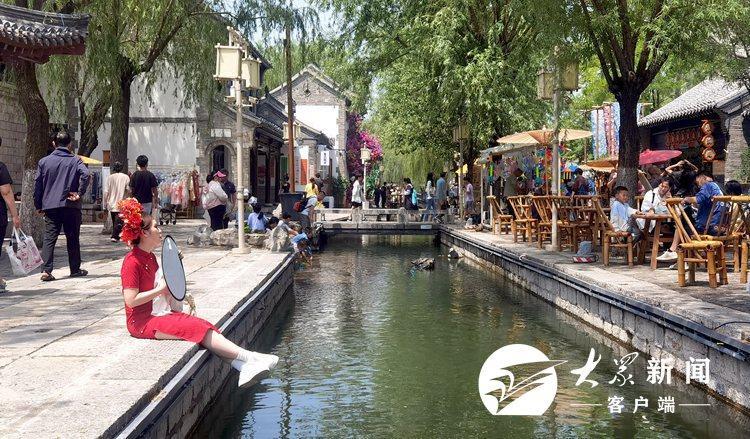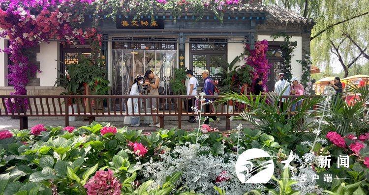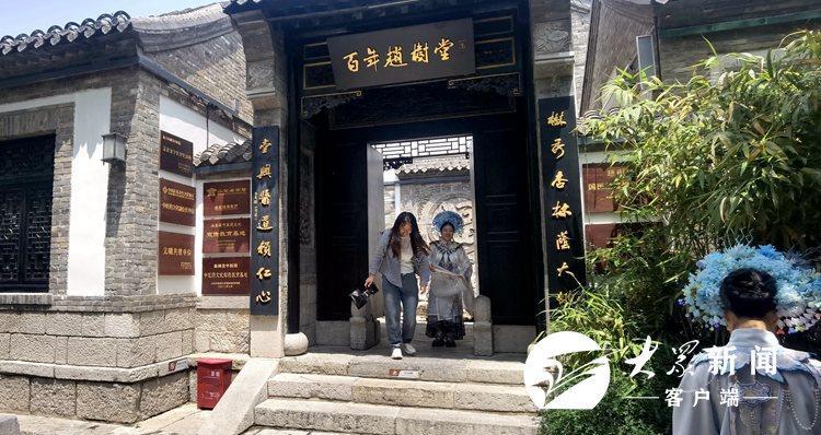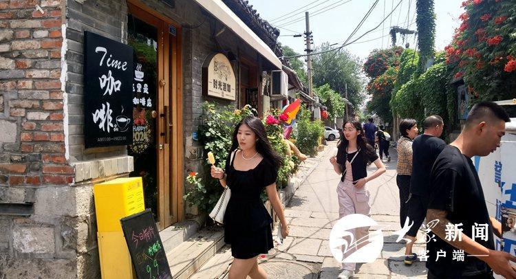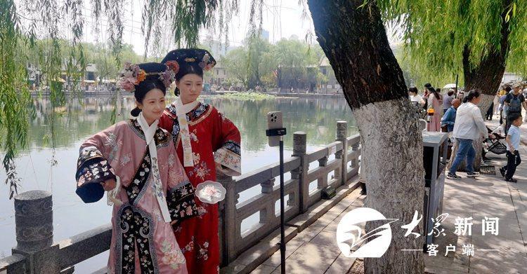 5月26日,济南老城(明府城)一带游客如织,别具风情,集中展示泉城、老城的特色风貌。在百花洲历史文化街区,随处可见在文创店、非遗文化门店直播拍照、观光打卡的游客。