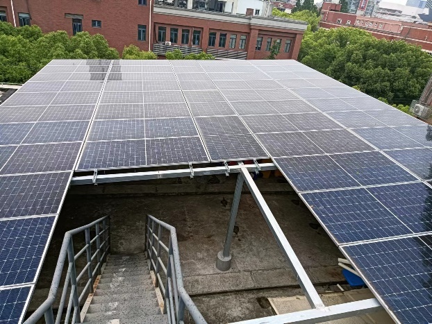 中心在屋顶和外立面铺设光伏,设计总容量为98.45KW,预计年发电量超过10万度,每年节约标煤约43.32t,减少燃煤所造成二氧化硫排放(SO2)3.25t,氮氧化合物(NOx)1.62t,烟尘29.46t,二氧化碳(CO2)排放107.93t。
