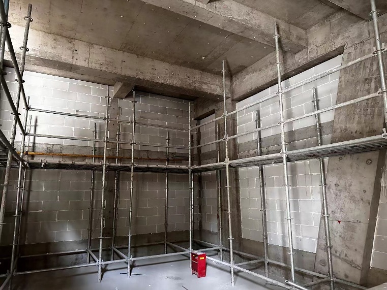 此外,项目还利用脚手架制作了操作平台,不仅提升了工作效率,还减少了材料消耗。临时围墙采用太阳能院墙灯,既环保又节能。