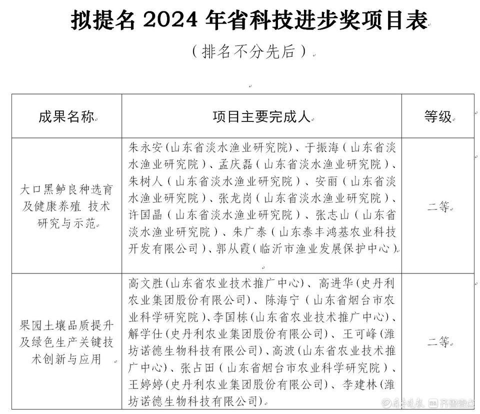 5月27日,山东省农业农村厅对拟提名2024年省科技进步奖项目进行公示。