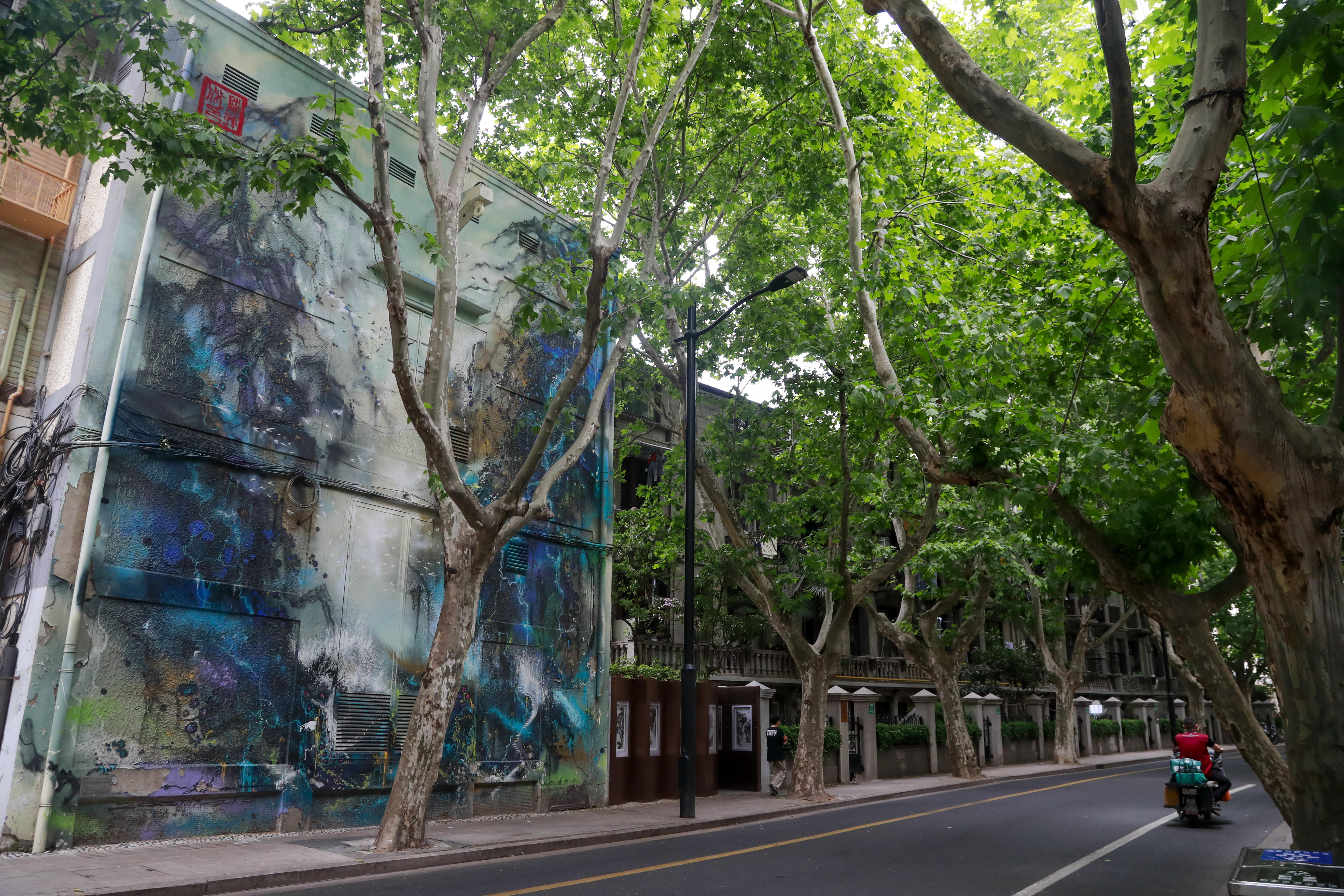 南昌路全长1.6公里,这条幽静又充满人文气息的小马路两旁长着一排排高耸入云的法国梧桐,伸展着枝叶,形成一条林荫道。这里有不少名人故居,有网红店和咖啡馆,马路两边典型的上海海派建筑里居住着本地居民,处处透露着烟火气。