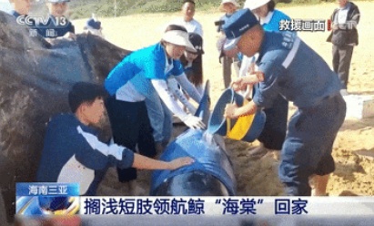 这是我国首次成功救治搁浅短肢领航鲸