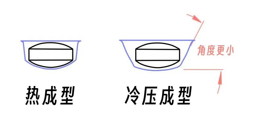 热成型包装与冷压成型包装的形状差别。图片来源:窗敲雨根据《药品泡罩包装应用指南》重绘