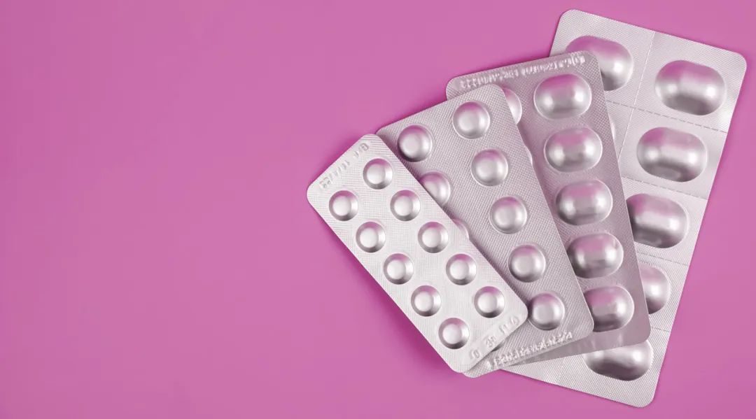 这种银色的泡罩包装是用含有铝箔层的复合材料制成的,比起透明的塑料板,它阻隔潮湿和光线的效果更好,能更好地保护药物成分。
