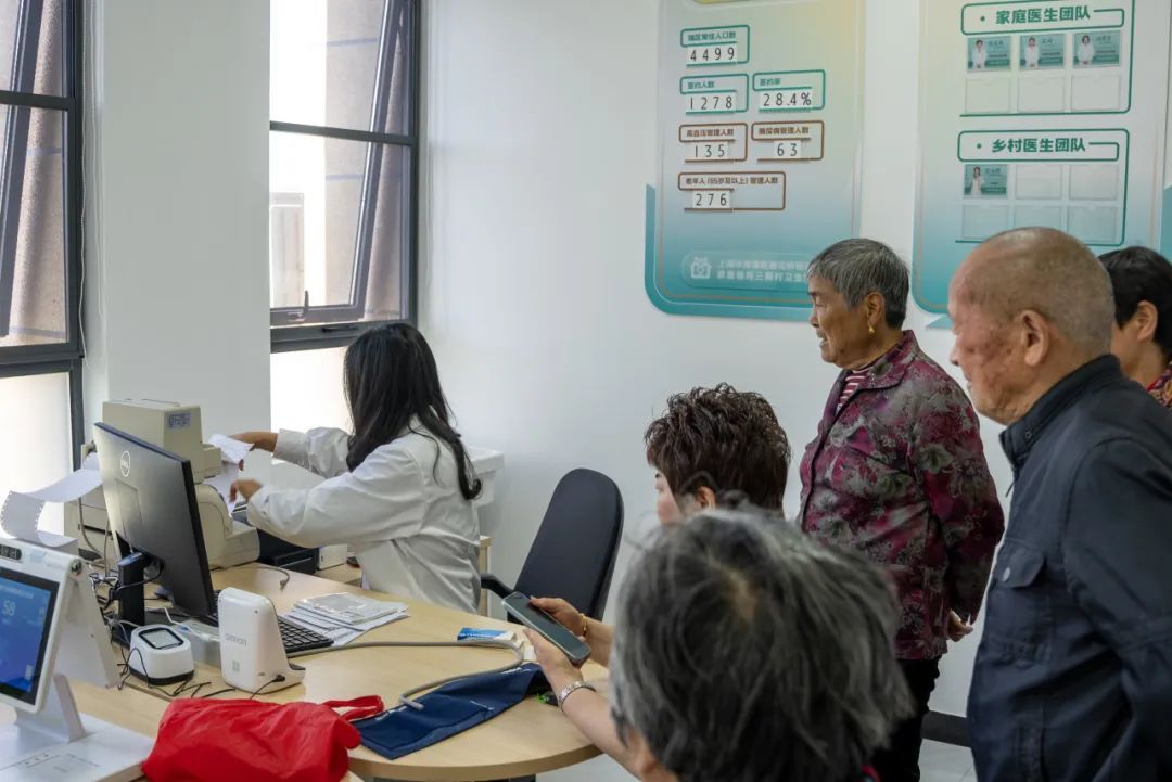 记者跟随一位就医老爷爷的脚步进入卫生室,诊室里已经围满了前来就医的居民。忙碌中的张医生趁着打印病历的功夫向记者介绍道:“虽然才刚开张,我们每天上午大概就需要接诊十几人次,大部分都是附近来配药的中老年人,目前我们的药房配备了多种常用药和常见老年病药品”。