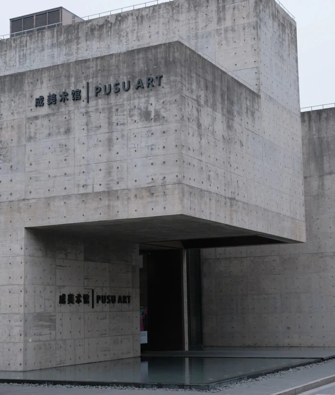 成美术馆建筑由上海储运旧仓库改造成。美术馆的内部运用了大面积落地玻璃,也保留了现代工业风。