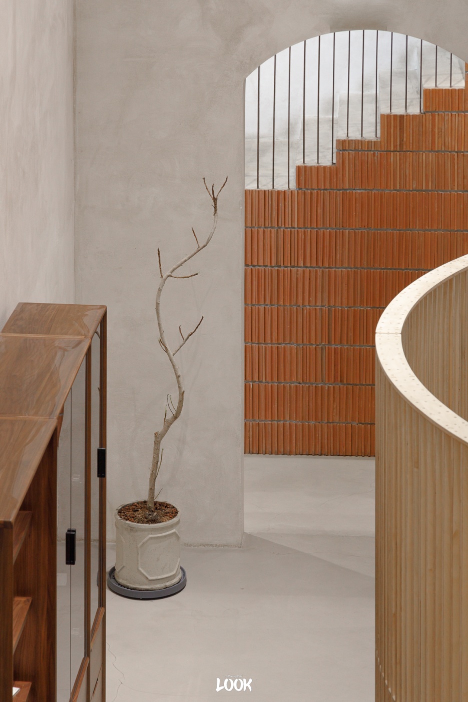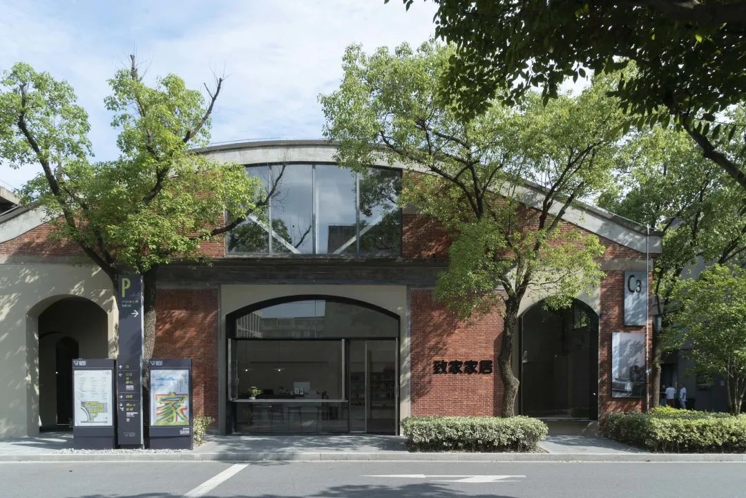位于中成智谷园区的致家家居共两层楼,1500㎡的空间内,保留了泛着时代印记的红色砖墙和高高拱起的半圆形屋顶,水泥自流平和手刮漆等富有肌理感的材质,传递着质朴简约的空间美学。