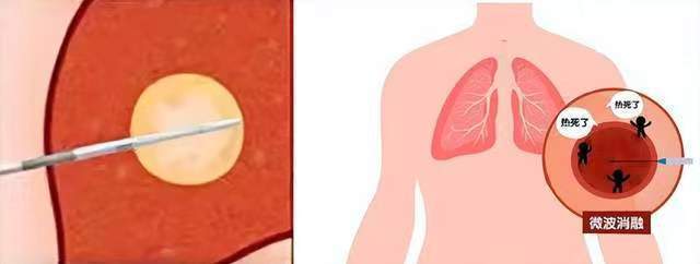 热消融有两种类型。一是射频消融,即通过射频能量使病灶局部组织产生高温,使癌细胞蛋白质变性、脂质层溶解、细胞膜破坏致组织细胞凝固性坏死。二是微波消融,通过微波加热达到灭活癌细胞的目的。