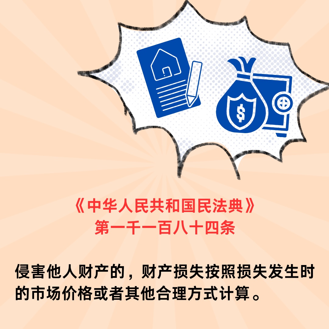 此外,因侵权行为导致财产损失的,财产损害赔偿要按照财产损失发生时的市场价格计算。也就是以财产损失发生的时间,该财产在市场上的价格为计算标准,完全毁损、灭失的,要按照该物在市场上对应的标准全价计算,如果该物已经使用多年的,其全价应当是市场相应的折旧价格。例如,一辆已经开了五年的汽车被毁坏,其全价应当是二手车市场与该种车型及使用年限相对应的价格。