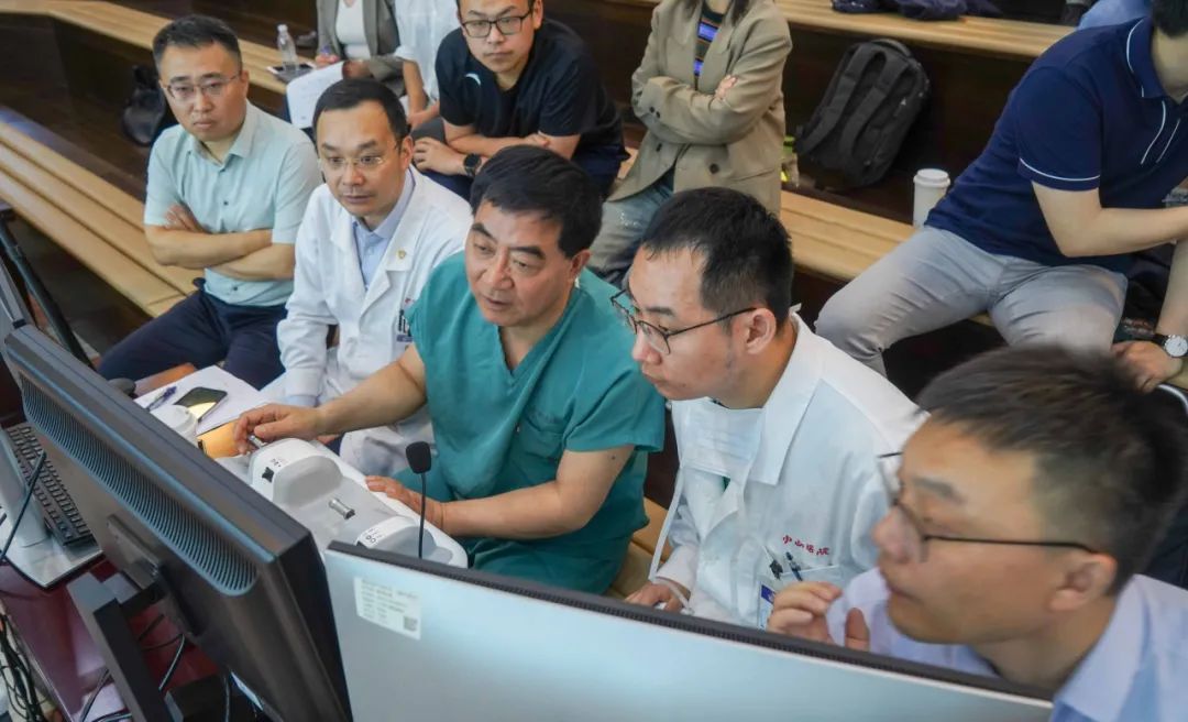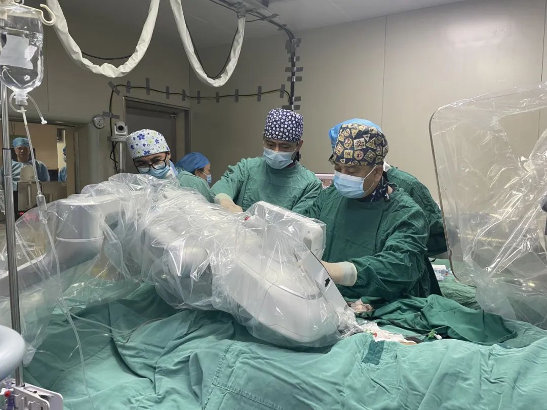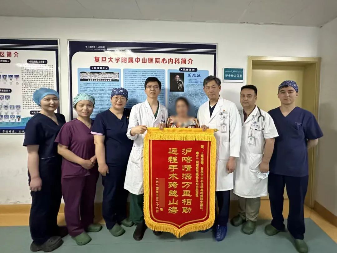幸运的是,近期葛院士团队联合研究机构研发的远程精准操控的泛血管介入手术机器人系统,已在喀什二院完成过多次演练。葛院士带领团队在反复研读患者病例资料后,认为患者的病情可以利用远程血管介入机器人进行手术。在复旦大学附属中山医院宋振举副院长,新疆喀什地区第二人民医院陈尉华院长的协调下,5月28日,经两院充分的术前准备并经伦理委员会批准,葛均波院士带领沈雳主任医师、裴志强副主任医师、王瑞住院医师携手喀什二院心内科团队成功为患者实施了手术。