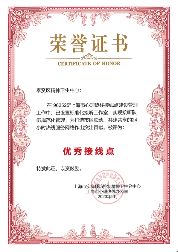 2019年5月,奉贤区精神卫生中心、奉贤区疾病预防控制精神卫生分中心开设奉贤区首条心理援助热线“021-37502012”,免费为公众提供5*24小时的专业的心理咨询服务。