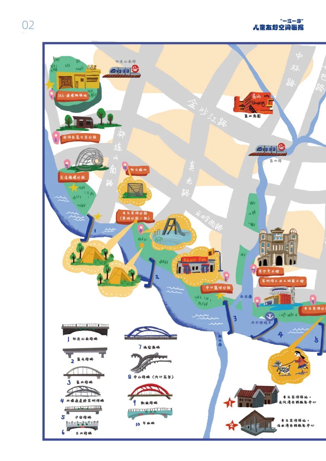 对于这个非常有启发性的建议,市“一江一河”办立即组织相关单位、新闻媒体共同商议,决定通过手绘儿童友好地图的方式来回应小朋友们的诉求,让大家对“一江一河”区域的儿童友好空间有更全面的了解。在去年的国际儿童日,市“一江一河”办尝试制作发布了第一张“一江一河”大型儿童友好设施的总图,获得了很好的社会反响。在此基础上,今年又抓紧绘制完成了中心城区8个区段的分段图,对分布在各区段的儿童友好设施和场所做了系统梳理和重点标注,希望能为广大儿童和家长们在开展亲子活动时带来一些便利。后续还将印刷一定数量的纸质版本,放置于滨水区驿站,供大家取阅。同时,还将与相关单位加快开发应用小程序,方便具体信息精确查询。
