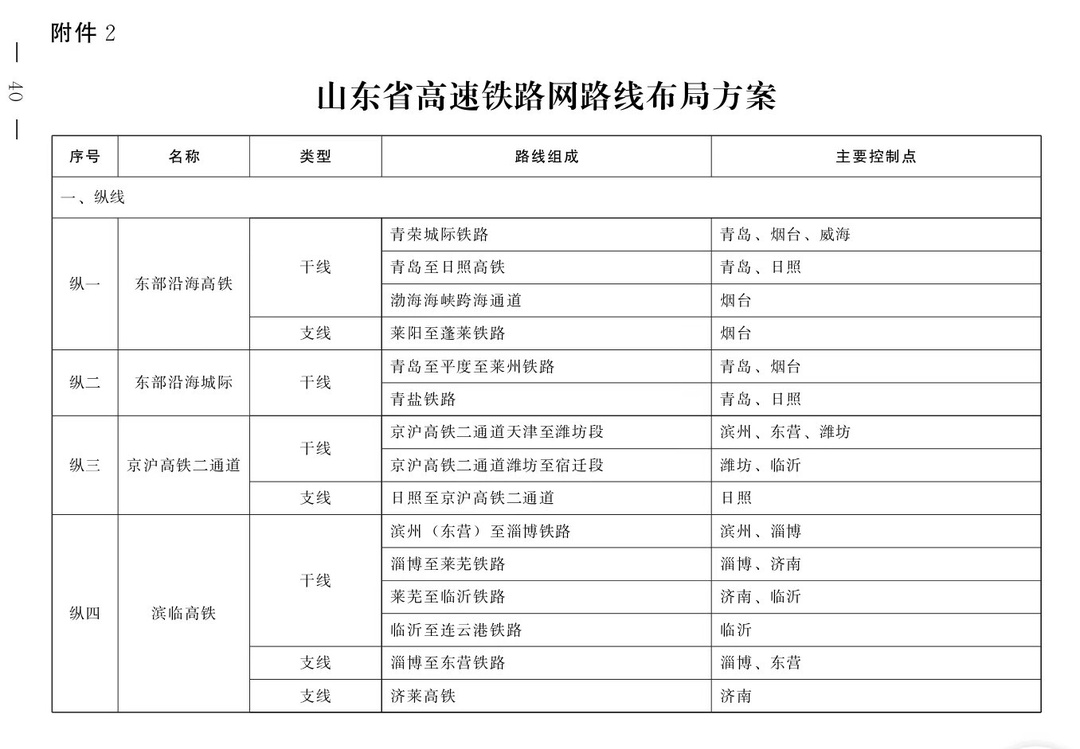 在2023年11月印发的《山东省综合立体交通网规划纲要(2023-2035年)》中,济南莱芜至临沂至连云港高铁,属于“纵四”中滨临高铁的干线组成部分。图源:山东省政府网站
