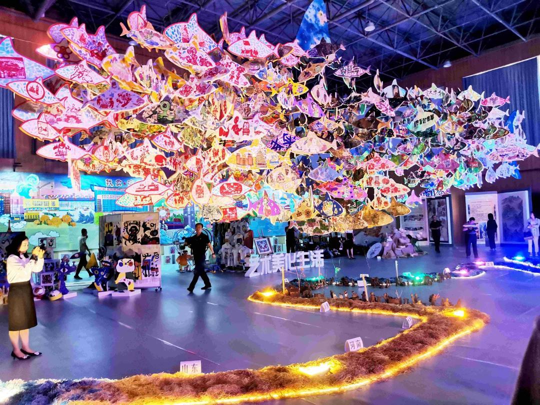 活动现场分为“艺术铭记历史、艺术美化生活、艺术呵护心灵”三个板块,共展出该区1万余名师生利用纸壳、铁丝、毛线、玉米皮等创作的1万余件艺术作品,在传承中华优秀传统文化中,展现历史文化、弘扬黄河文化,为广大师生送上一场艺术盛宴。