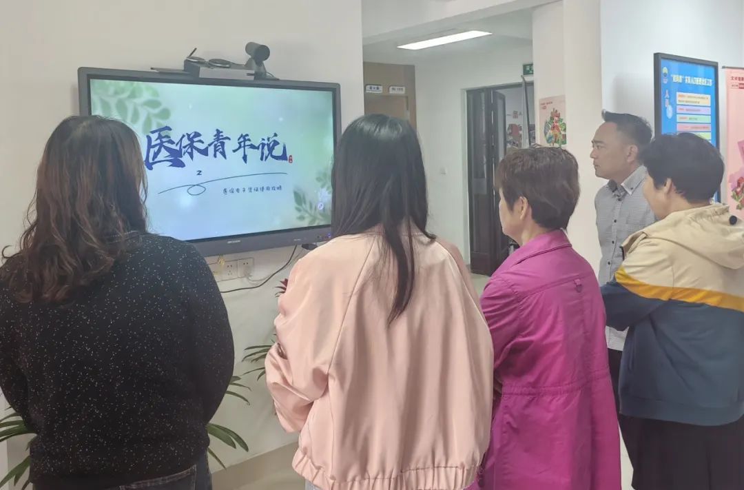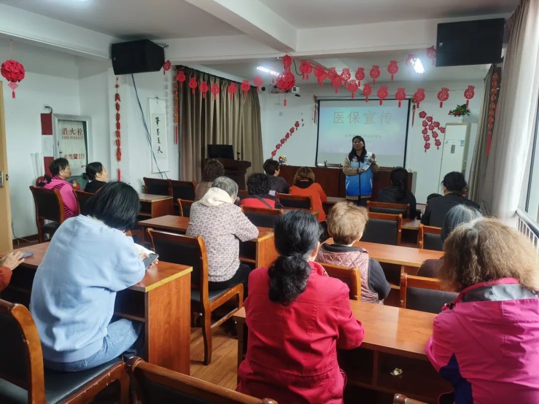 海湾镇居民区医保干部为居民讲解电子凭证宣传激活,播放医保宣传视频。