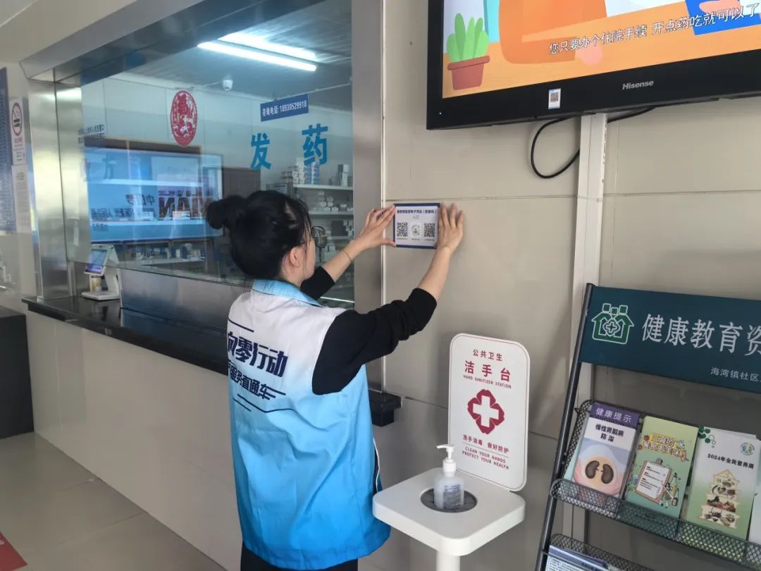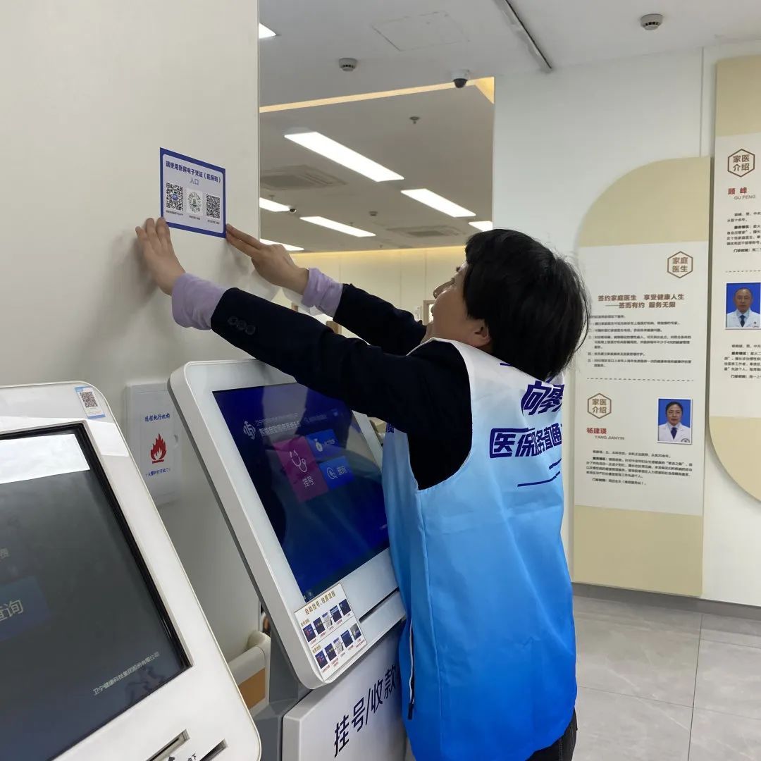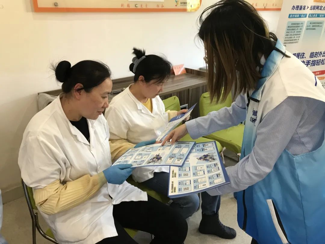 海湾镇受理中心工作人员、居委医保干部进入卫生院进行医保电子凭证宣传,引导注册、激活。
