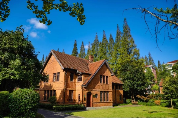 清水红砖、红瓦屋面,或处于绿树浓荫之中,或与现代建筑相辉映,成为上海理工大学亮丽的景观。