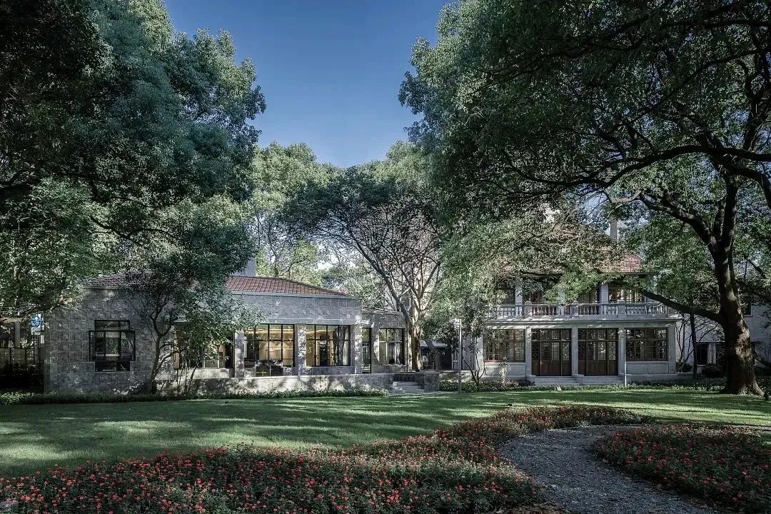 上海交响音乐博物馆占地4773平方米,共有欧式房屋5栋,建筑面积1048平方米。老洋房的花园中间是大草坪,草坪周围百年香樟树枝繁叶茂,花园深处花草修剪得精致漂亮。