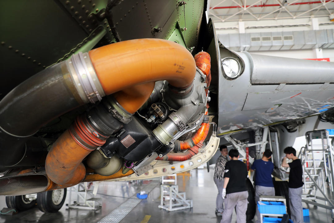 5月22日—25日,第七届中国(日照)新闻摄影周期间,记者随队到位于日照市东港区的日照山太飞机工程股份有限公司(简称“日照山太”)采访,高标准机库内,工作人员对飞机进行检查、保养,工作现场繁忙有序。