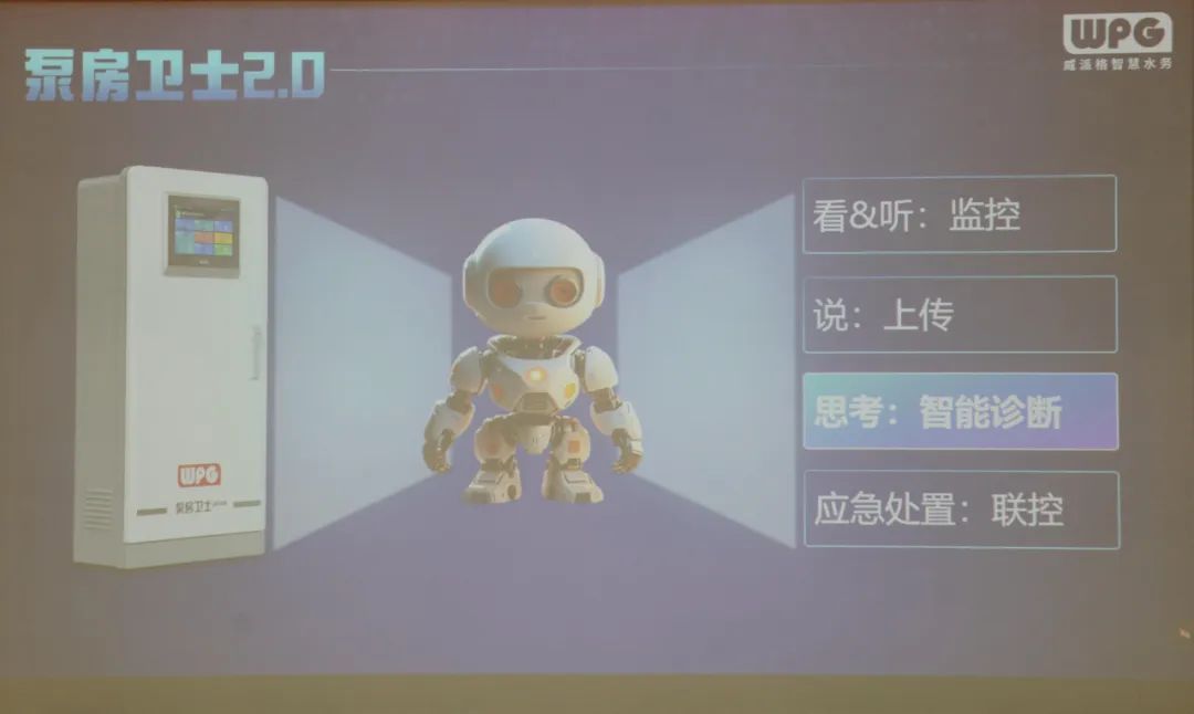 在智慧水务行业,人工智能及大模型的引入不仅带来了深刻的变革,更为行业带来了前所未有的发展机遇。作为威派格五位一体理念体现的一款产品,泵房卫士2.0凭借其会看、会听、会思考、会上传的特性,以及噪声诊断、地面积水诊断、仪表异常诊断等多项智能化功能,大幅提升了泵房运维的效率和安全性。