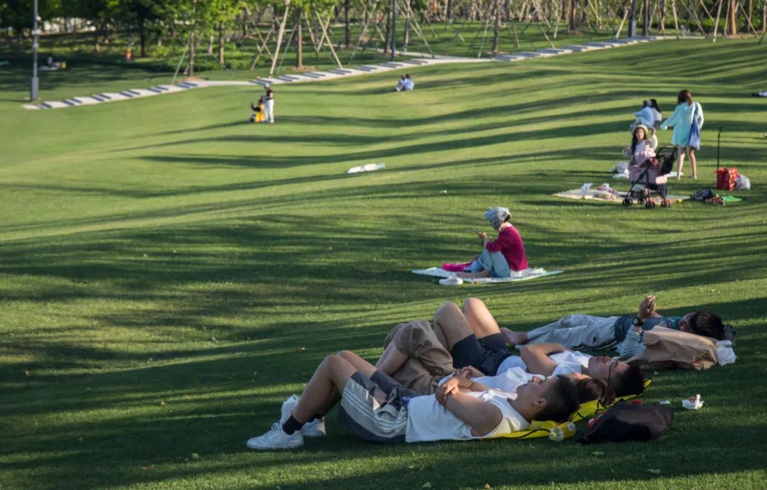 随着天气渐热,较为舒适的草坪游玩时间为16:00—19:30,周一至周五草坪人并不是很多,可以自在安静地享受。