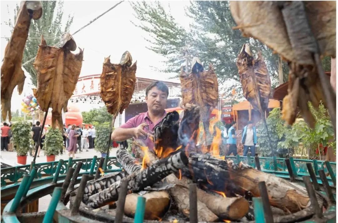 在“群樱会”主会场红樱桃景区,游客们不仅能够欣赏“群众村晚”展演、十二木卡姆、喀群赛乃姆等专场文艺汇演,还能够在热闹得像巴扎一样的展销区买买买,并在美食街品尝特色烤鱼、烤肉、烤包子等各种美食。