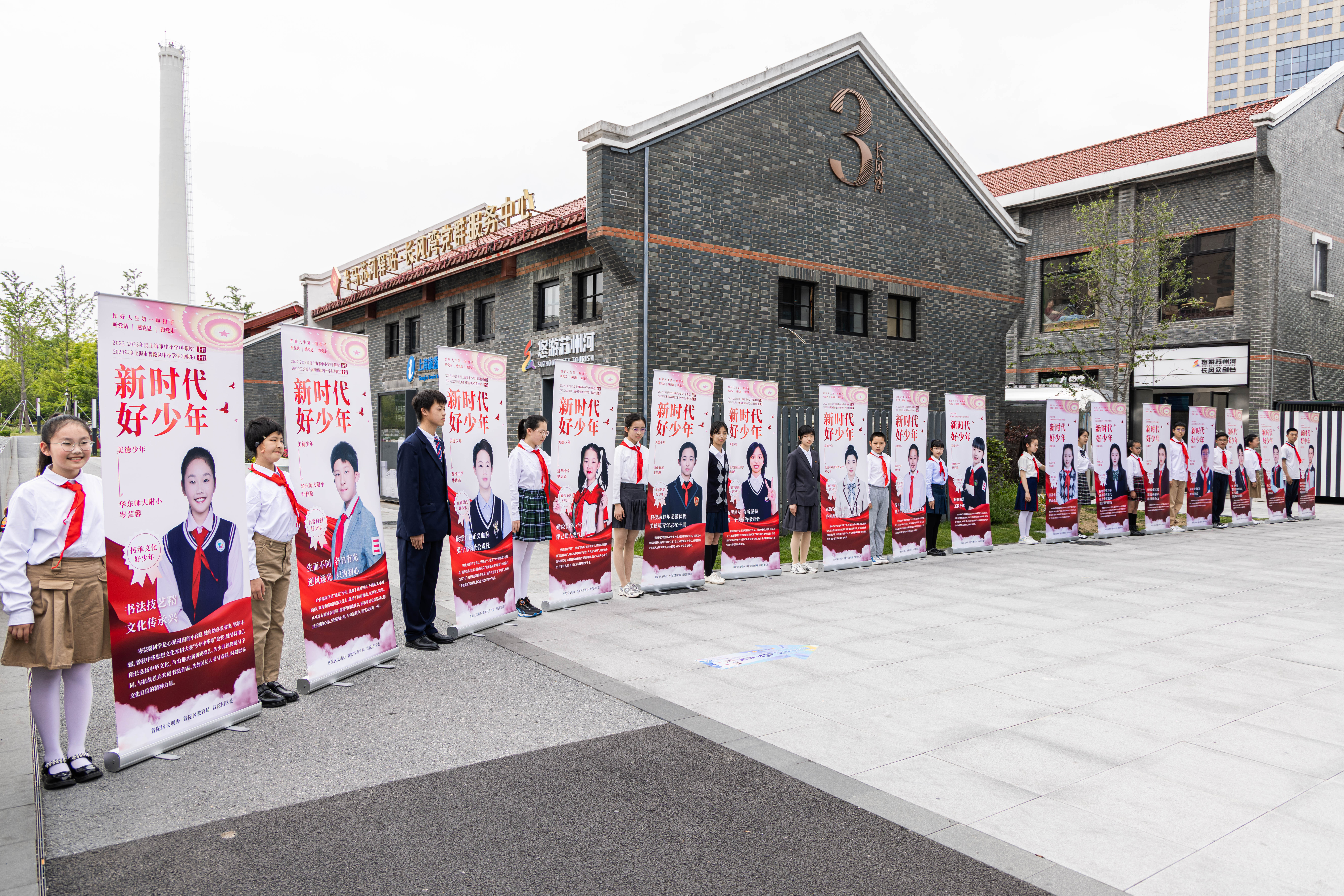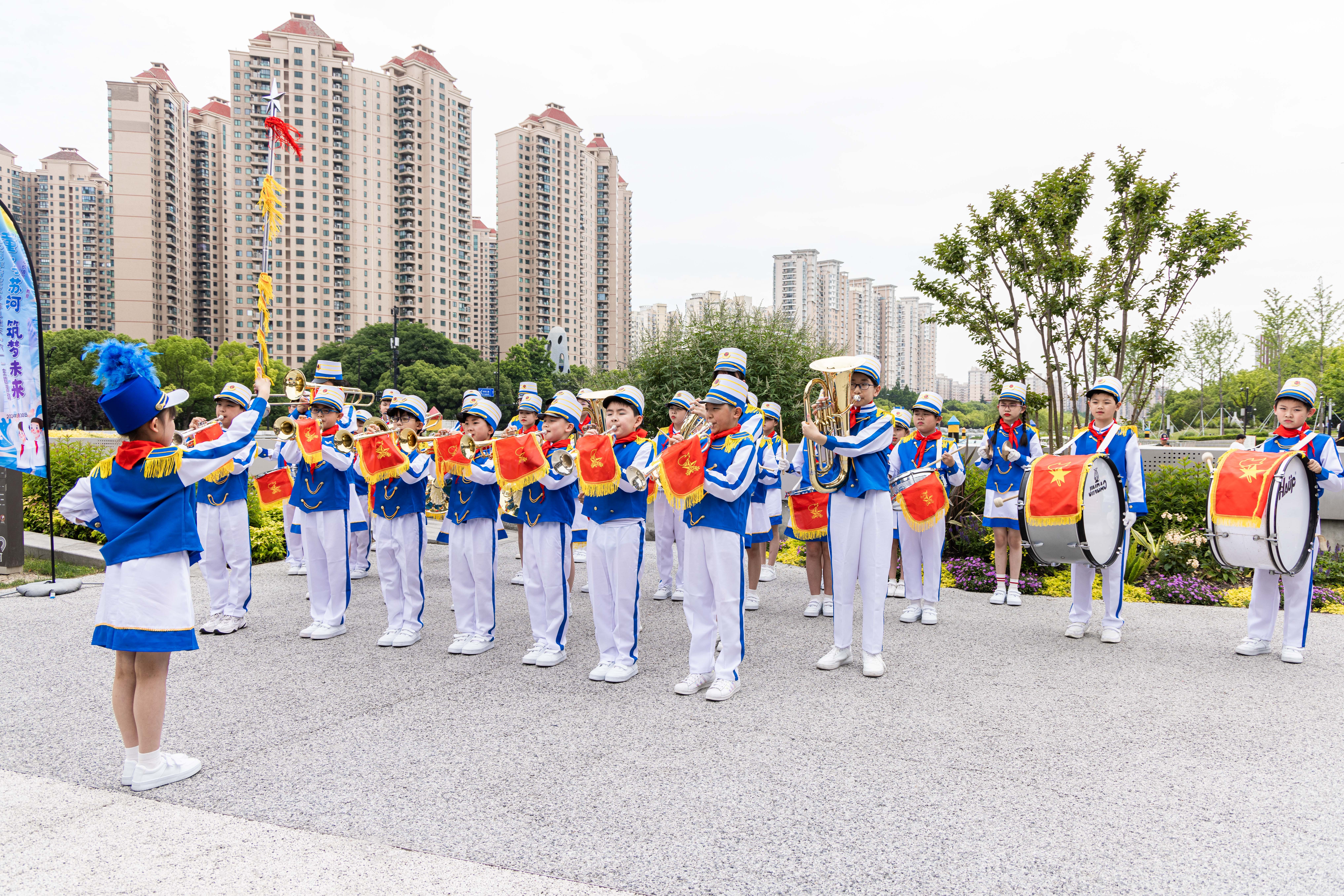 外场,展示了“新时代好少年”的先进故事。上海市中远实验学校的鼓号队奏响了振奋人心的旋律。