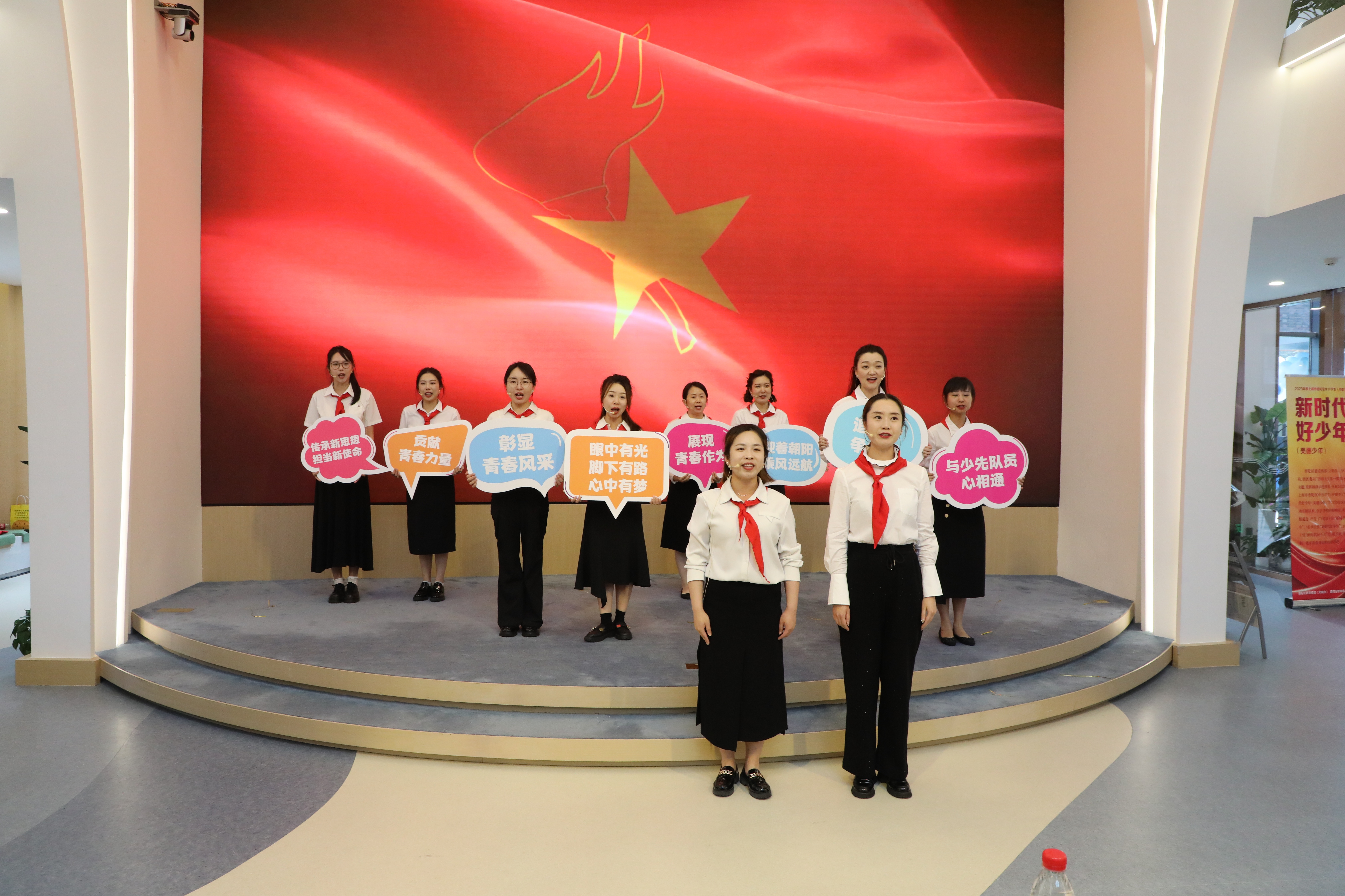 少年向上,国家向前。活动尾声,全体少先队员合唱《少年乘风》,并在与会领导带领下响亮呼号。队旗飘飘,誓言铮铮,少先队员们将牢记星星火炬下的誓言,用实际行动为红领巾增光添彩。