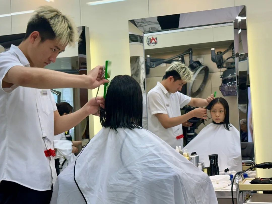 不一会,过腰长发变成了齐肩短发,张竞文看着镜子里自己短发的样子,俏皮地晃了晃脑袋。理发后,工作人员递上了荣誉证书,见此,张竞文脸上露出了灿烂的笑容。“剪发之后觉得很轻松,新发型也很漂亮,希望能把头发捐赠给一个和我年龄差不多的小朋友。”张竞文说,“今天收到和妈妈一样的荣誉证书,十分开心。平时爸爸妈妈和老师都经常告诉我要乐于助人,捐赠头发就是在帮助别人,是一件好事情。”