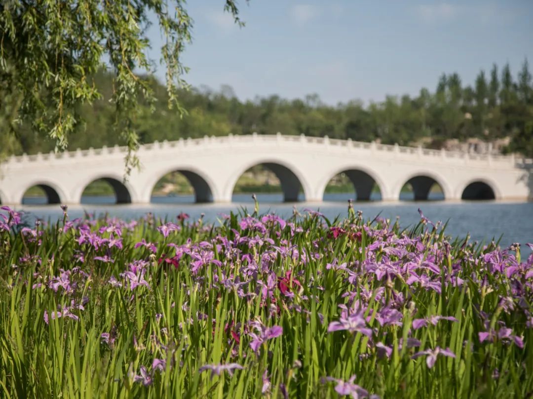 十一孔桥全长约75米,以传统中式园林石拱桥为基础,融入现代建造工艺。它与双子山山峰起伏呼应,成为景观焦点。