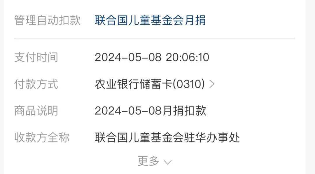 就这样每月默默自动转账捐款