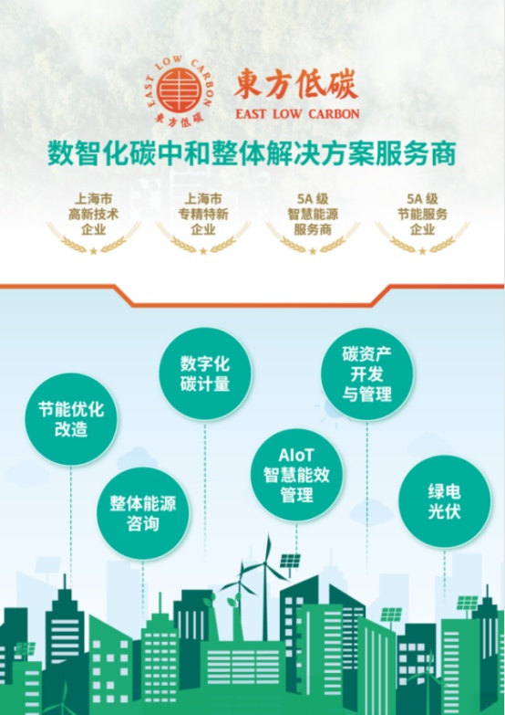 上海东方低碳科技产业股份有限公司成立于2011年2月,是绿动资本投资控股的一家高科技创新型企业。公司致力于为城市级、企业级客户在建筑和工业领域提供全链条、数智化碳中和整体解决方案及高效能源管理服务,将卓越的综合节能实践、领先的节能技术、光伏发电与先进的人工智能物联网技术深度融合,为工业企业、高端酒店、三甲医院、数据中心、商业超市、公共设施等领域提供能源审计、节能诊断、合同能源管理模式下的综合节能改造,同时为改造项目安装东方低碳的“AIoT双碳智慧管理平台”,利用数字技术与企业能源和碳排放管理深度融合,帮助用户打通全链条双碳路径,创造新的增量价值。