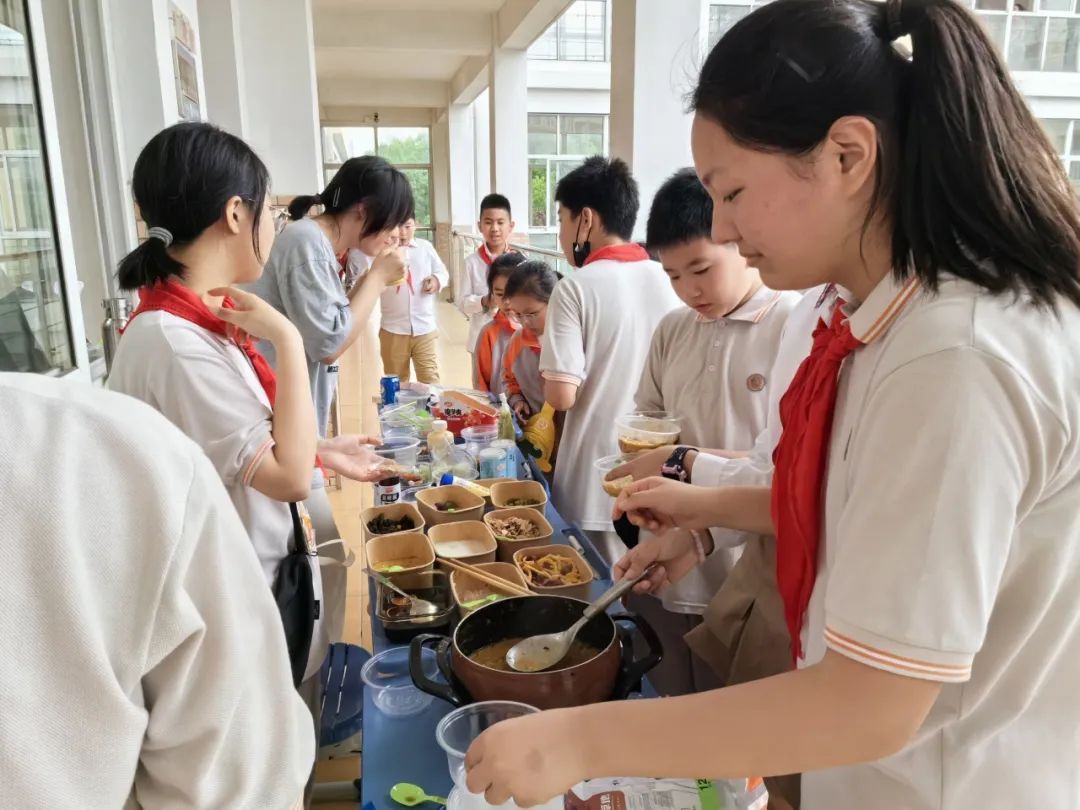 奉中附小和弘文学校分别以美食为主题开展“跟着食物游中国”和“美食游园会”活动。孩子们仿佛踏上了一场奇妙之旅,欢快地穿梭在各个摊位之间,品尝着丰富多样的美食。通过一道道具有地域特色的食物,领略着祖国各地的风土人情和文化魅力,脸上洋溢着满足的笑容。