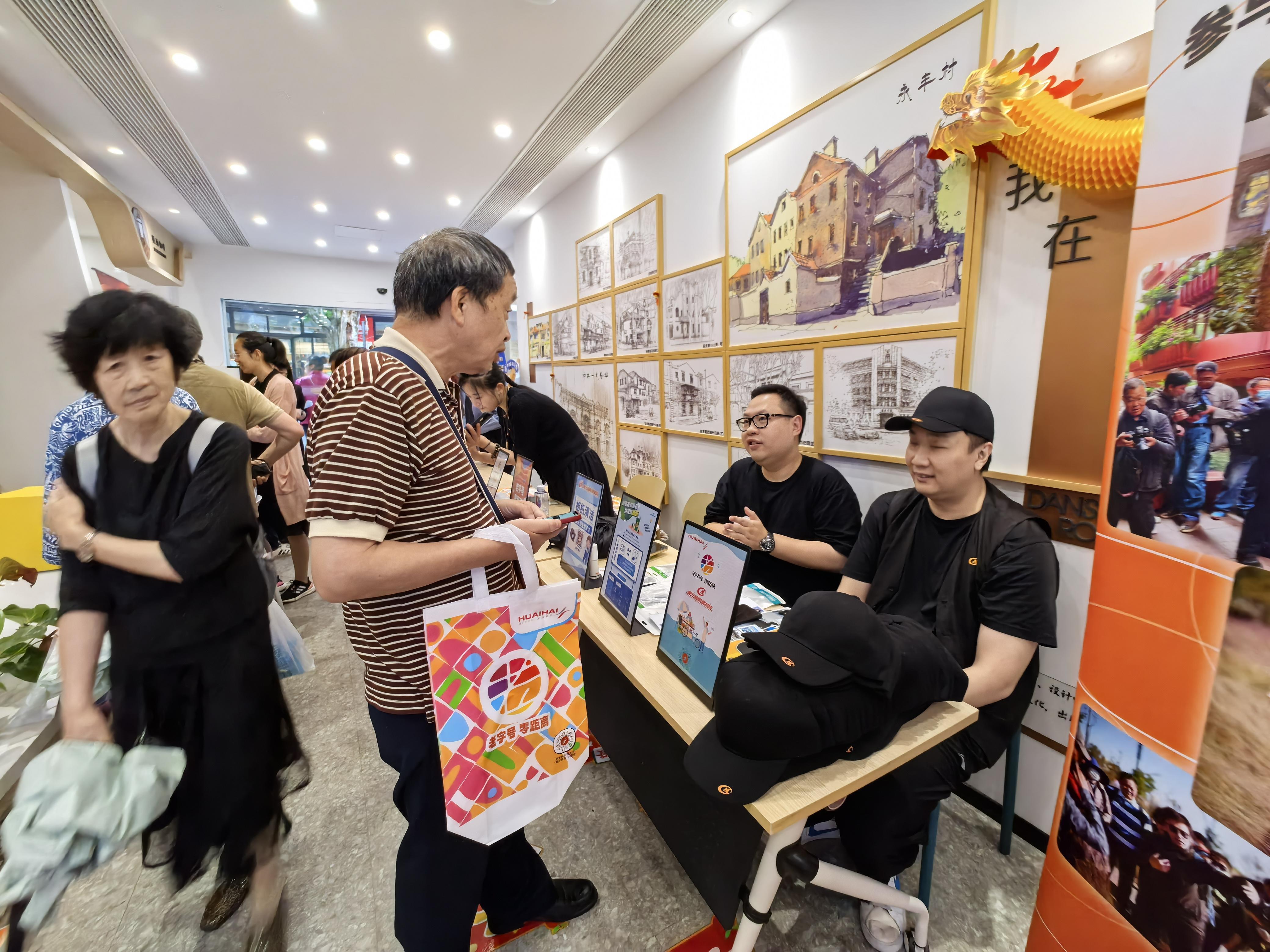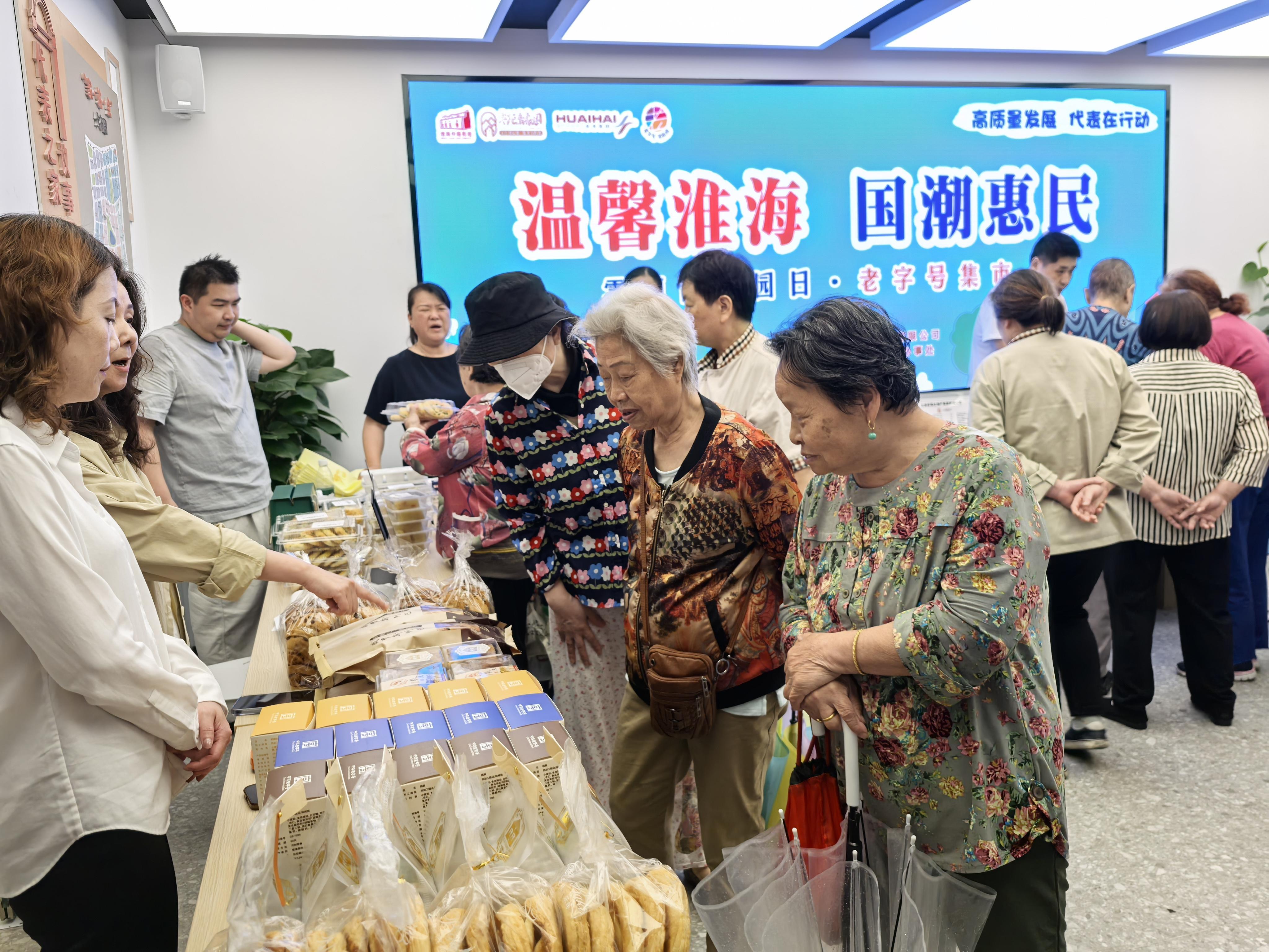 活动当日淮海商业集团所属的光明邨、老大昌、巨鹿食品集团、上海药房徐重道、全国土特产、金辰大酒店、古今、益民金龙、星光摄影等诸多品牌汇聚一起,为社区居民带来了各自的经典产品和创新品种,让居民们在家门口就能买到淮海路老字号的商品。