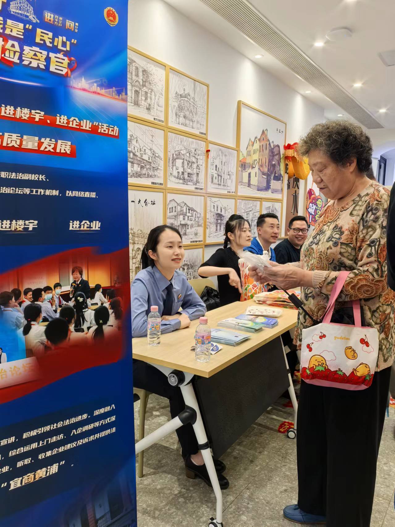 黄浦区检察院第三检察部结合“民心检察官”实践活动,向社区居民开展反诈法制宣传及法律咨询等志愿服务。同时,检察官还向现场老字号品牌企业介绍和发放“检察护企”法律指南手册,积极对接企业经营发展的切实需求。