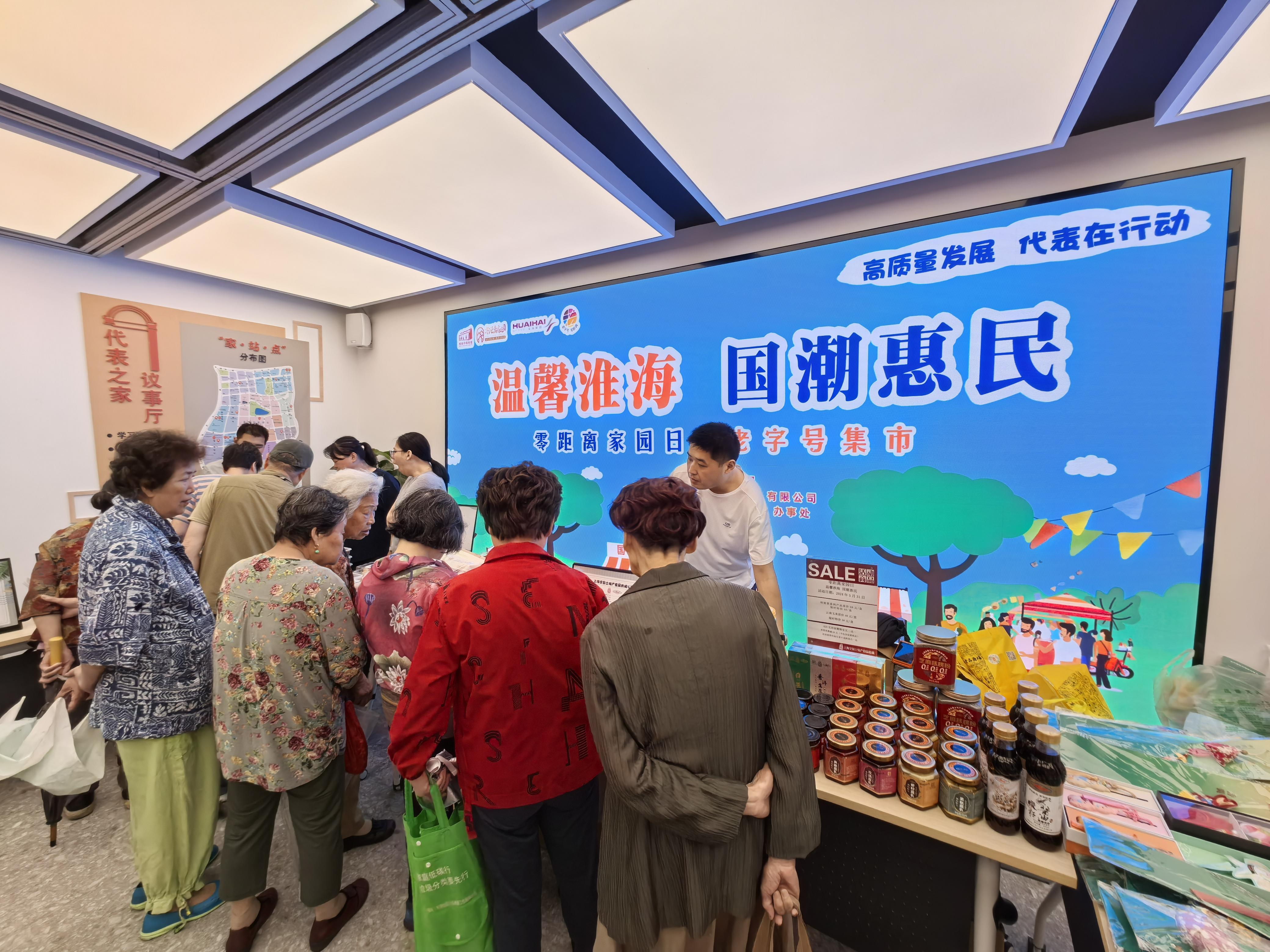 5月31日,淡水路372号的“淮海家·零距离家园”内热闹非凡,来自淮海集团的人大代表为“零距离家园日”集市活动带来的“老字号”专场吸引了众多的淮海居民前来“赶集”。