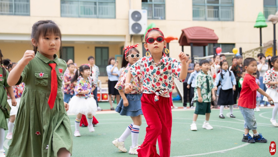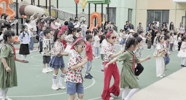 童年,必须要有音乐。育英幼儿园的师生们精心准备了一场怀旧音乐Show。师生复古舞蹈火热开场,“六一”的快乐在音乐声中一触即发。