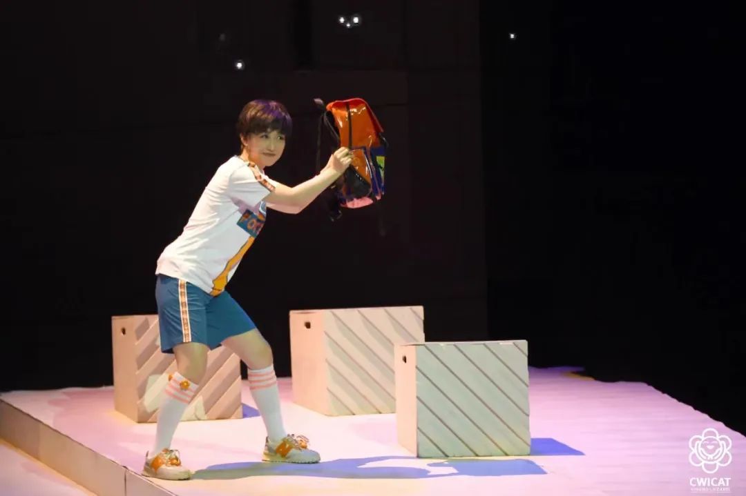我是来自中国福利会儿童艺术剧院的演员曾巧童,这次参演的剧目是儿童剧《放飞的天空》。这是一部以“双减”为背景的现实主义题材儿童剧,它结合音乐剧的形式,讲述了一群小学生和一个足球教练共同平衡梦想和现实、一起不断蜕变进步的故事。我在剧中饰演的角色是玫玫,她是这支小足球队当中为数不多的女生的代表,也是一个为比赛甘愿剪掉一头长发、坚强乐观、充满正能量的形象。我认为自己和玫玫之间有着一定的共同点——看上去比较瘦弱,但内心都有着自己想要坚持的东西。不管未来的人生是怎样的模式,我相信她都可以活出自己想要的样子,这也是我心目当中新时代的女孩们应该有的面貌,所以我特别喜欢这个角色,也特别希望自己可以把她演好。