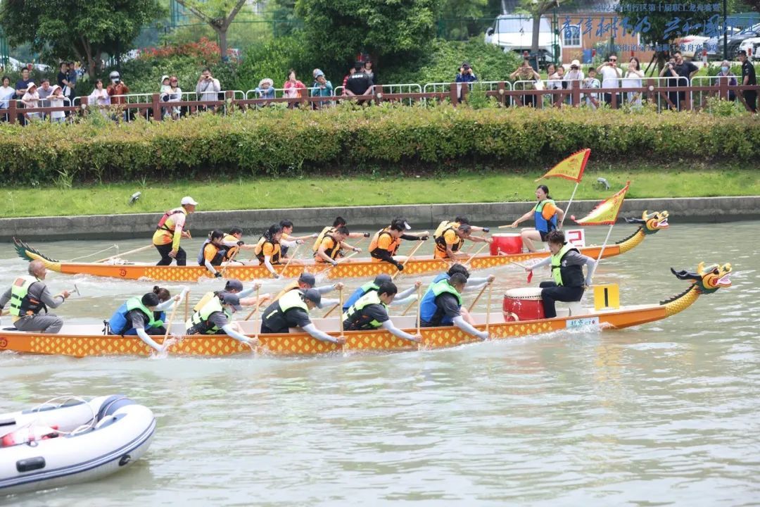 “第一次参加龙舟赛,心情很激动!作为大零号湾的一家初创企业,在零号湾工会联合会的组织下我们参加这次活动,不仅找到了归属感,还在参赛过程中与其他企业有了接触交流,进一步找到了创业的动力和方向。”大零号湾企业上海百易基因生物科技有限公司总经理李建平告诉记者。据了解,这是闵行区总工会举办的第十届职工龙舟赛,同时也是自2017年以来江川路街道第五届职工龙舟赛,已成为当地老百姓津津乐道、最期盼的体育活动之一。“响应闵行‘一南一北’发展战略,在闵行区总工会的指导下,本届龙舟赛升级成区级赛事,希望通过对传统文化的传承和发扬,进一步提升和激发区域职工的精气神和凝聚力。”江川路街道总工会主席嵇红秀表示。当天比赛分两组(街镇组、企事业单位组)激烈角逐,最终莘庄工业区总工会、上海交通大学2支队伍获得第一名,江川路街道总工会、江川路街道商会2支队伍获得第二名,虹桥镇总工会、零号湾工会联合会2支队伍获得第三名,新虹街道总工会、吴泾镇总工会、上海市第五人民医院、圣戈班汽车玻璃(上海)有限公司等4支队伍获优秀组织奖。