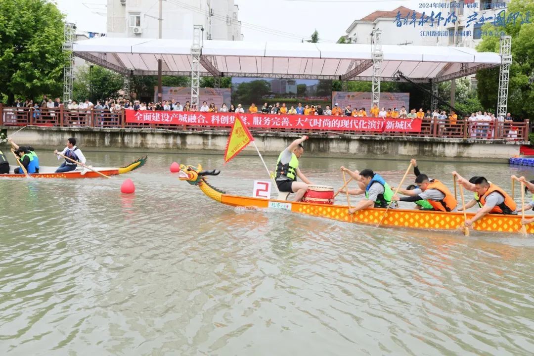 6月1日,2024年闵行区第十届职工龙舟赛暨“香樟树下的共和国印迹”江川路街道第五届职工龙舟赛,在江川辖区北竹港(景谷路至凤庆路段水域)火热开赛。