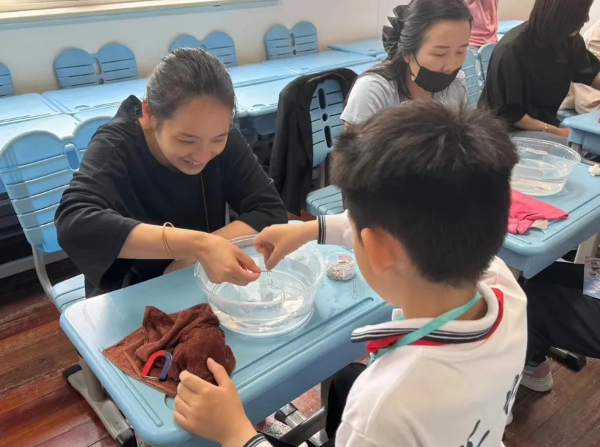当天,学校开展了一场“智创游园会”。孩子们分为不同的小组,在不同的教室间穿梭挑战,每成功通过一个项目或赢得一场比赛,就能得到一枚“你真棒”的奖章。