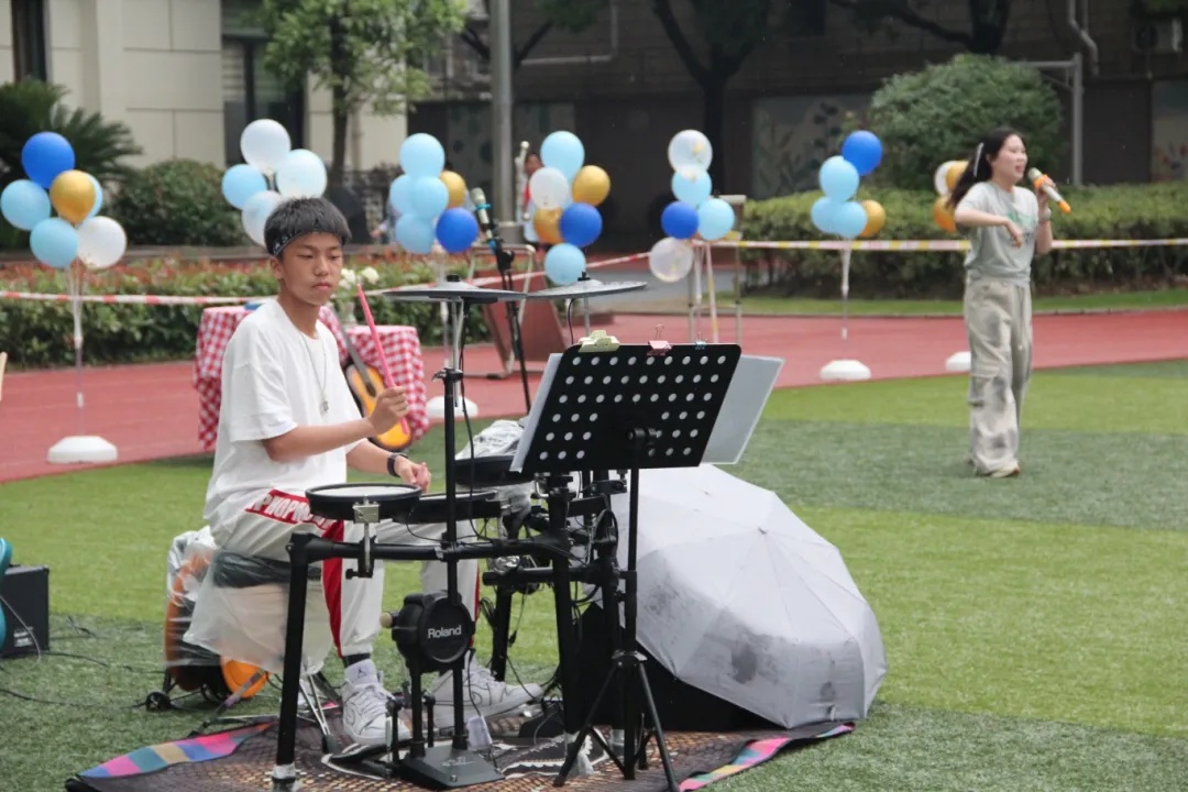 操场的草坪上,“心动”演唱会正在举行,来自六、七、八年级的28位师生带来了10首动听的歌曲,用纯净、优美的嗓音表达内心的情感,通过师生互动、生生互动,让师生都得到身心放松,传播心理正能量。
