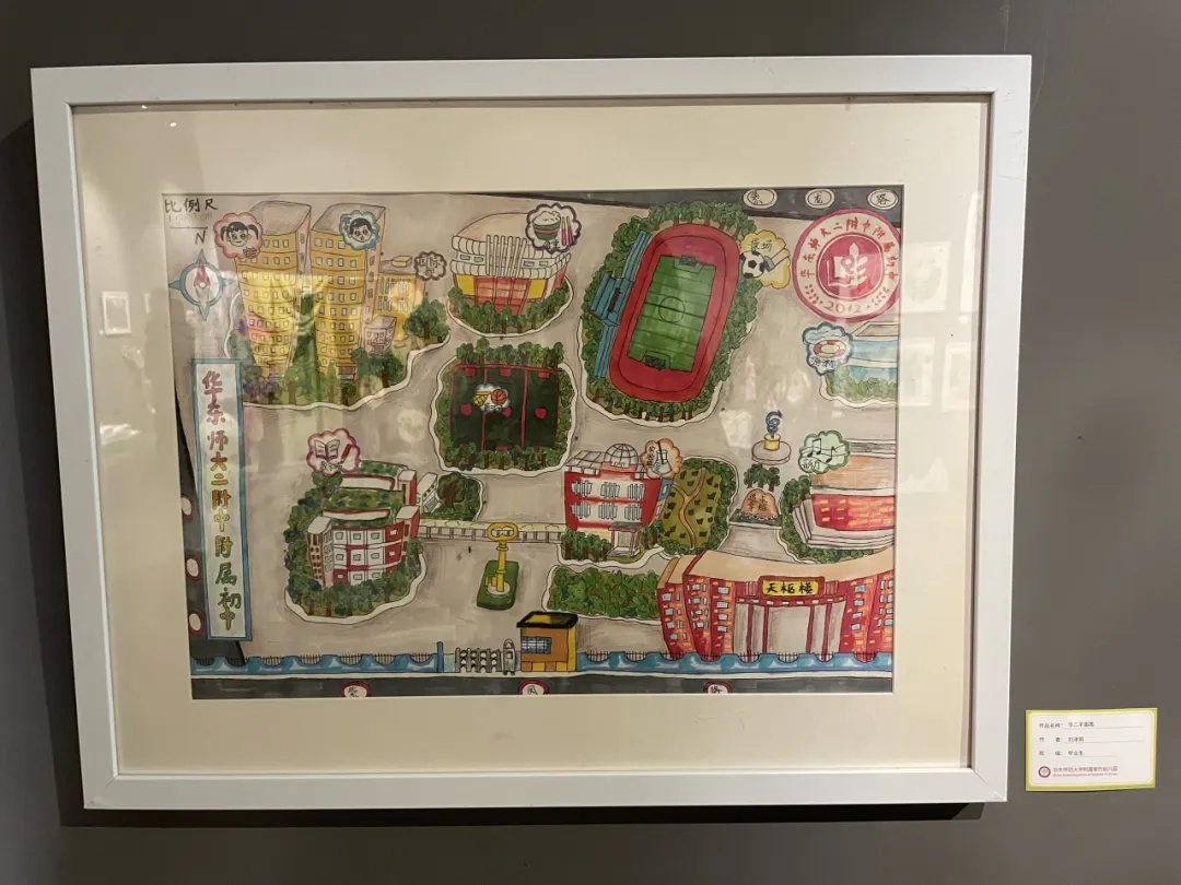 目前就读于华东师范大学第二附属初级中学七年级的刘泽玥也以校友的身份,创作了一幅《华二平面图》。