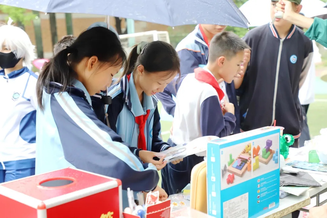 在上海市民办新黄浦实验学校,一场爱心义卖在小雨中拉开了序幕。