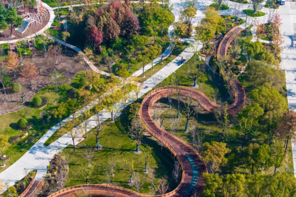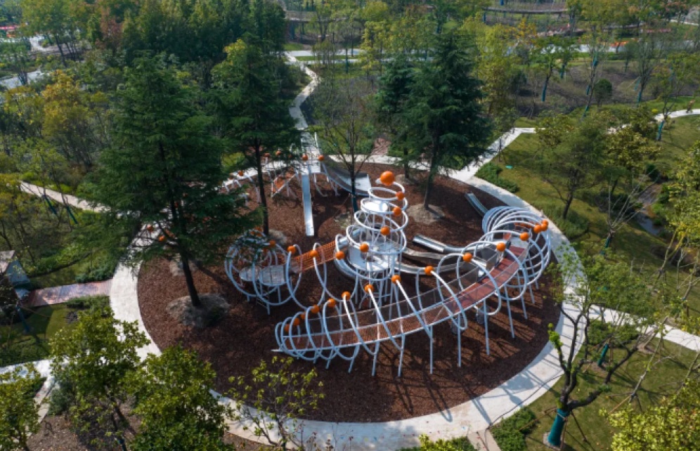 3公顷的“儿童友好”示范区域,设有竹节虫秋千、千足虫座椅、蚕蛹滑梯等9处无动力儿童游乐设施,仿生了本土昆虫的形态,还有树篱学堂、木作学堂,在玩乐中亲近自然,激发探索精神与想象力。
