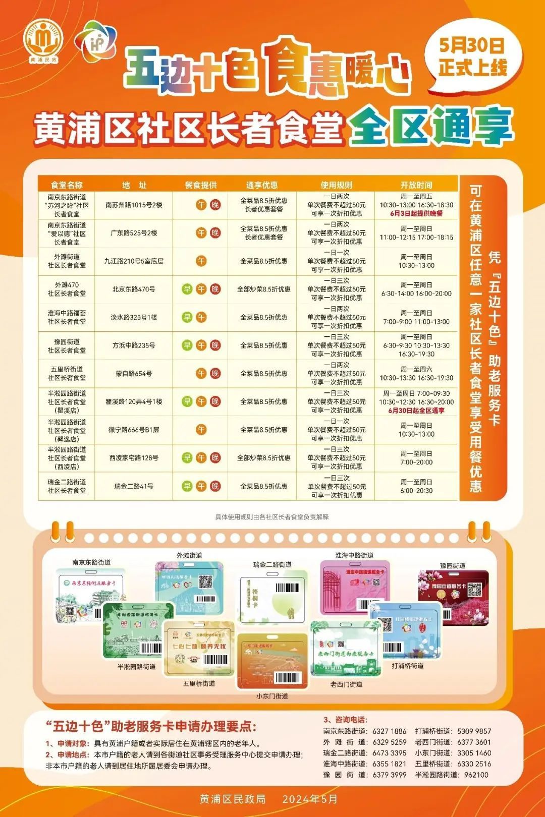 目前,黄浦区社区长者食堂“全区通享”服务已正式上线,户籍地或居住地在黄浦的老人,凭“五边十色”助老服务卡,即可通享全区11家社区长者食堂统一8.5折用餐优惠,加上去年推出的老字号长者餐厅,目前黄浦老年助餐服务“全区通享”场所达42家。
