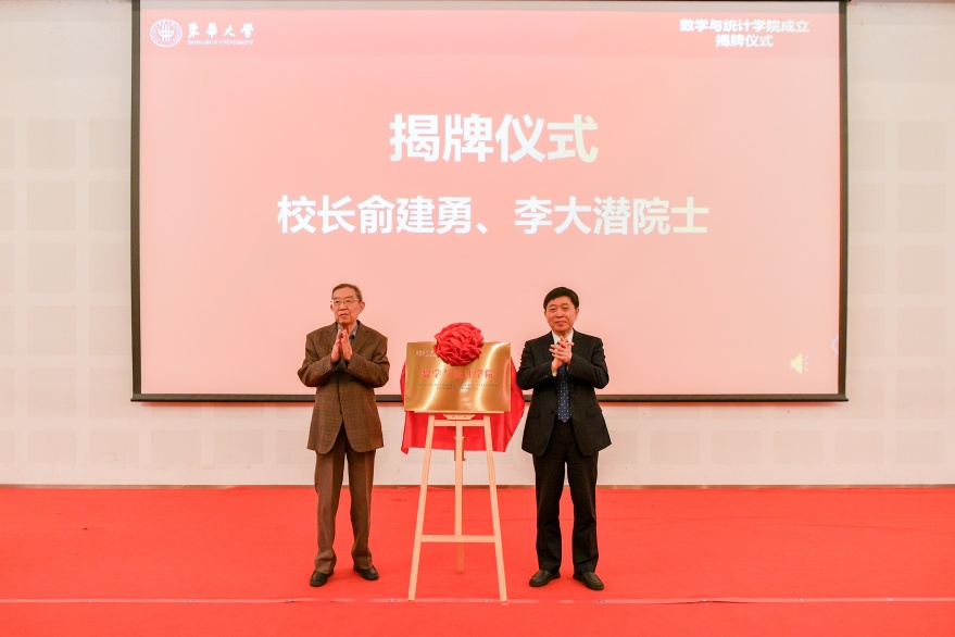 活动中,东华大学校长、中国工程院院士俞建勇以及东华特聘顾问教授、复旦大学李大潜院士,复旦大学物理学系主任吴义政分别为数学与统计学院、物理学院揭牌。数学与统计学院、物理学院相关负责人分别介绍了各自学院的基本情况和发展愿景。