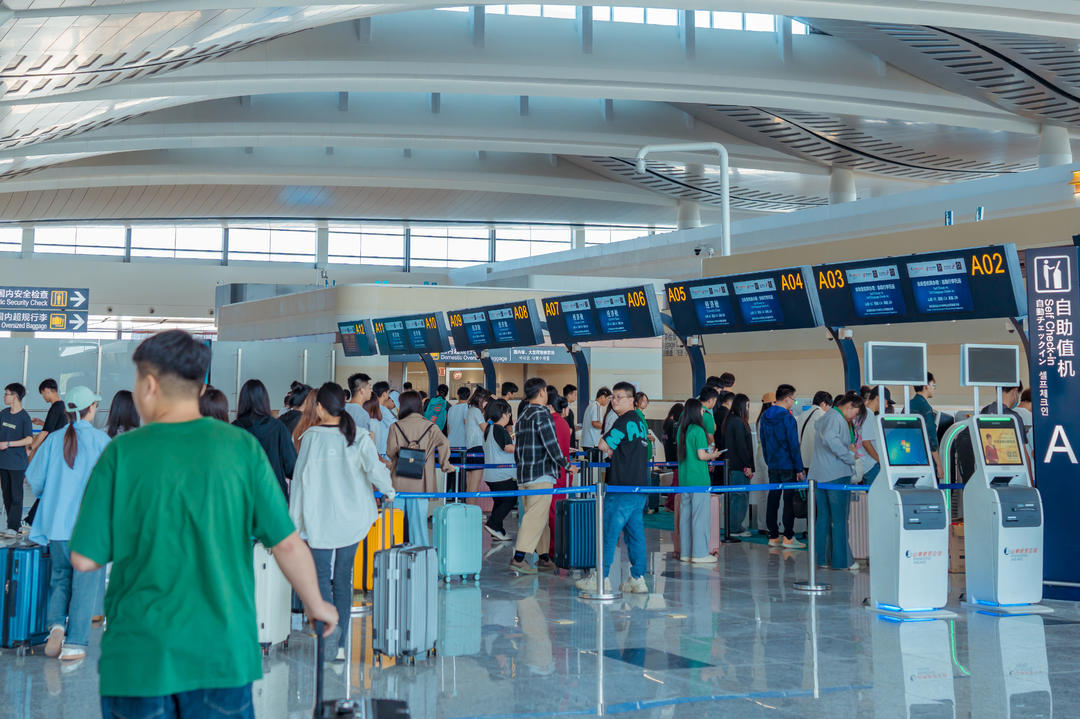 据悉,烟台机场T2航站楼将于6月28日全面启用,届时将全面运营保障国内、国际及地区进出港航班。烟台机场T2航站楼采用港湾式构型,在提升航空器运行效率的同时兼顾旅客进出港高效便捷,其中一层为国际国内行李提取、远机位出发到达层,二层为国内出发到达混流、中转联程层,三层为值机、安检手续办理及国际出发到达层,四层浮岛为商业层。在流程建设方面,采用了目前国内外枢纽机场普遍采用的进出港混流模式,实现旅客进出港、中转联程、行李提取等流程的全面升级优化;在绿色低碳方面,采用智能建筑技术、节能环保材料、变风量空调系统和节能光源、国家认证的节能设备,充分利用自然采光、自然通风、绿色屋顶与立体绿化,实现建筑节能、空调节能和照明节能等效果;在人文体验方面,采用开敞的单边值机岛布局,为自助设备使用和旅客等候提供充足的空间,同时,考虑到烟台冬季寒冷多雪的气候特点,特别设置了出租车、机场巴士室内等候区;在智慧出行方面,通过人脸识别技术,实现了全流程刷脸出行,打造了自助值机、自助托运、智慧安检、自助登机等服务,可有效减少排队等候时间。此外,在旅客活动流线上设置集餐饮、零售、休闲娱乐为一体的集中商业区、具备餐饮功能的贵宾区等,可满足旅客多样化、多层次、便捷舒适的航空出行需求。