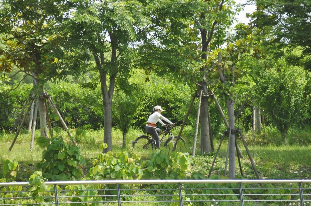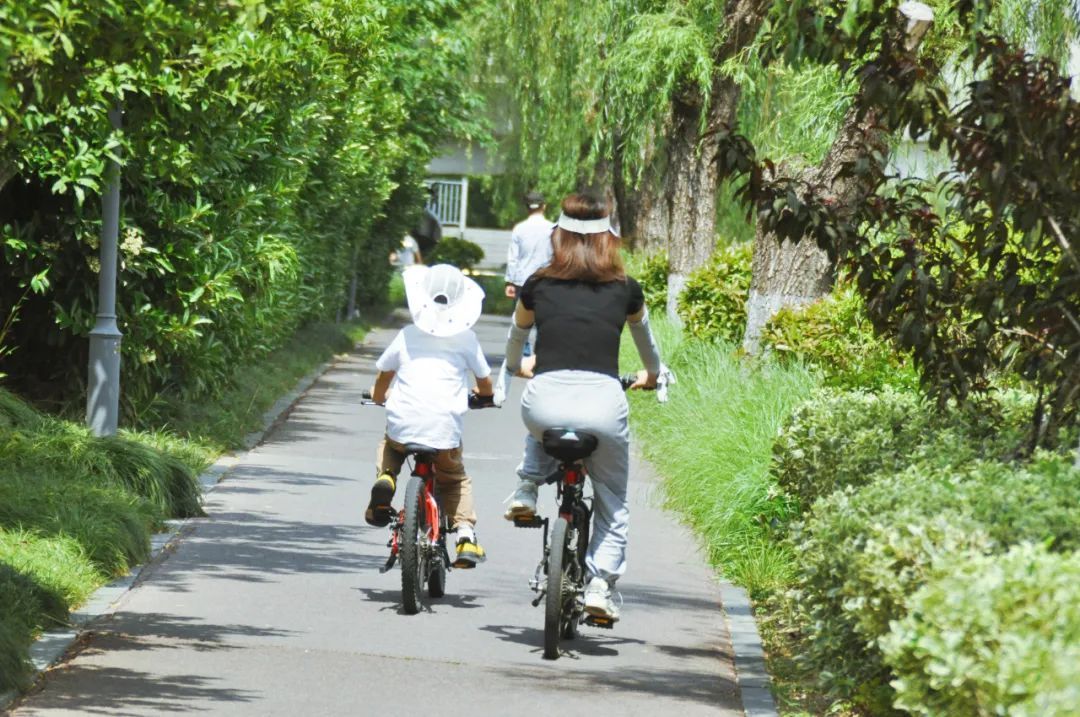 在骑行中,享受阳光,享受绿色。耳边是喜欢的音乐,吹拂到脸上的是凉爽的风,满眼都是各种各样的绿色……舒服,惬意。