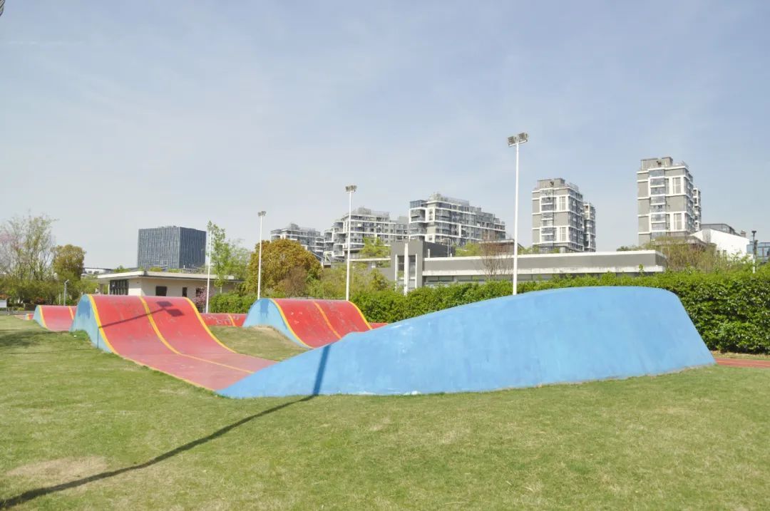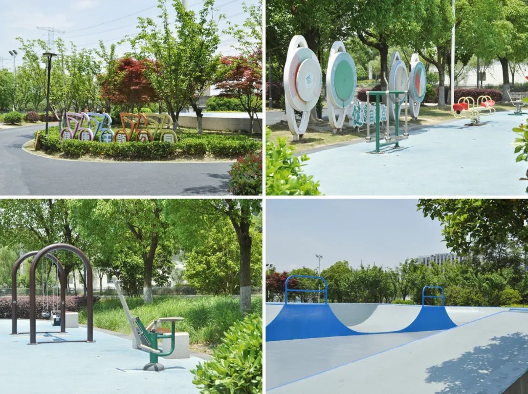 继续前行,在华浦驿和崧润驿之间,游之园很大,亦可作为休息的小站点;尔后继续前行,便可抵达上达河与油墩港交界处。这里有一个小小的健康主题公园,还有一个极限运动场(ps:对岸还有三处极限运动场哦)~